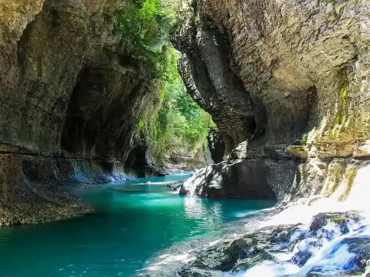 Relatively obscure until Georgia’s independence, Gachedili Canyon has become a sought after and mythical destination. Water courses through a tightly-woven network of limestone cliffs for 1.5 miles in this fairy-tale canyon. Gorgeous greenery in seemingly endless shades lingers overhead, regaled in moss and haphazardly hanging ferns.
