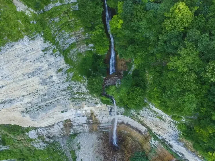 Burrowed inside of a steep gorge, Leghvtakhevi Waterfall is a focal point for photographers who capture the cascade as it tumbles from above.